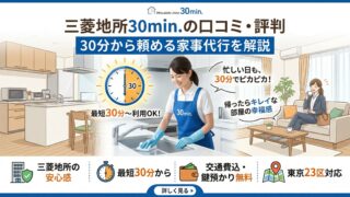 三菱地所30min.の口コミ・評判|30分から頼める家事代行を解説。30分だけでいいから、誰かに家事を手伝ってほしい 家事代行って気になるけど、2時間も頼むほどじゃないんだよな。