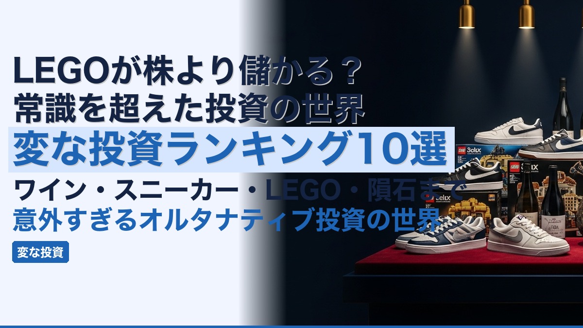 「投資」と聞くと株式や不動産を思い浮かべる人がほとんどでしょう。しかし世界には、ワインやスニーカー、LEGOブロック、さらには隕石にまで投資する人たちがいます。本記事では、ユニークで意外な投資対象を10個紹介しながら、それぞれの市場の仕組みとリターンの実態に迫ります。読み物として楽しみながら、投資の本質を考えるきっかけにしてください。