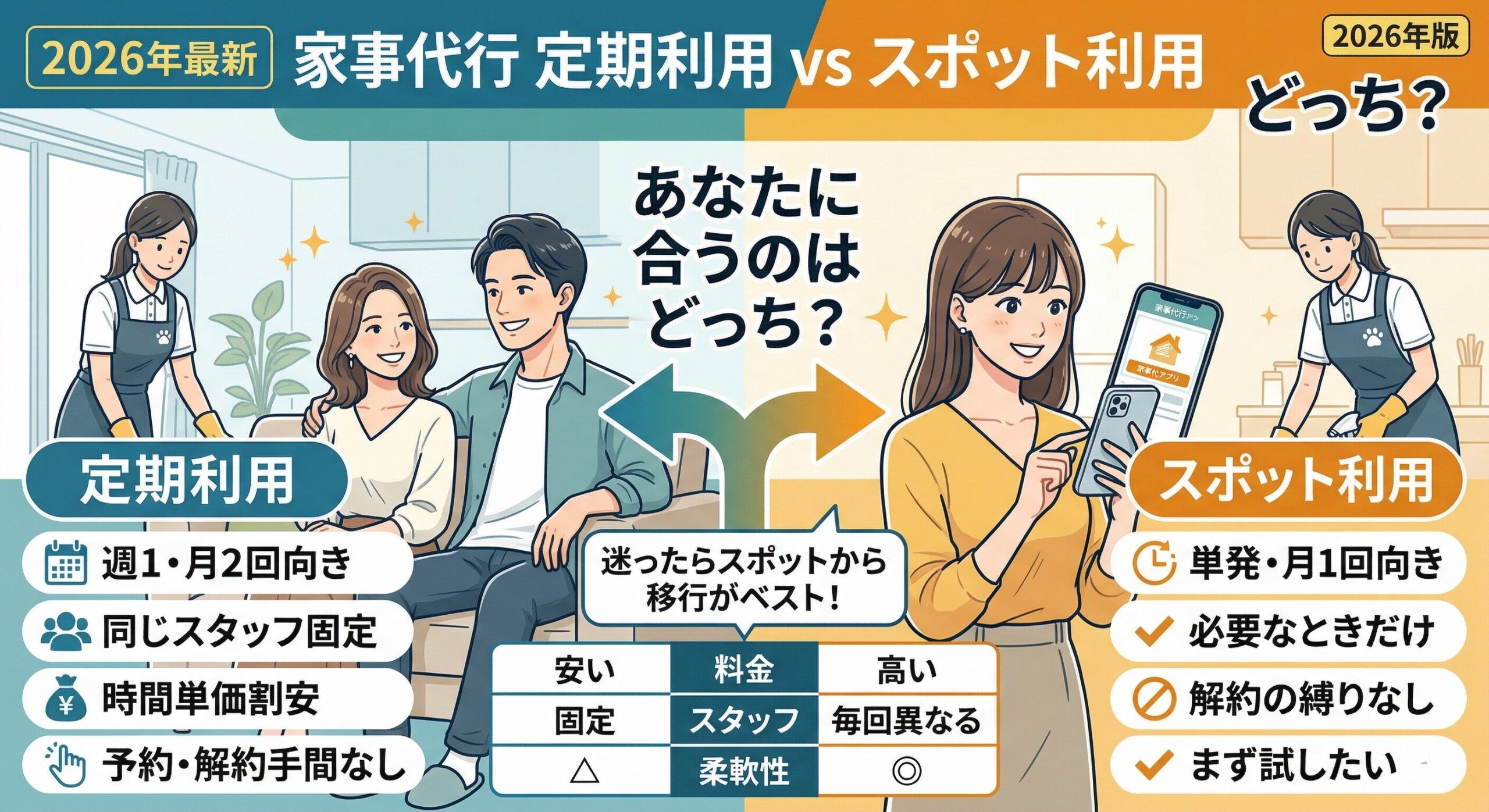 家事代行の定期利用とスポット利用を比較|あなたに合うのはどっち?【2026年】