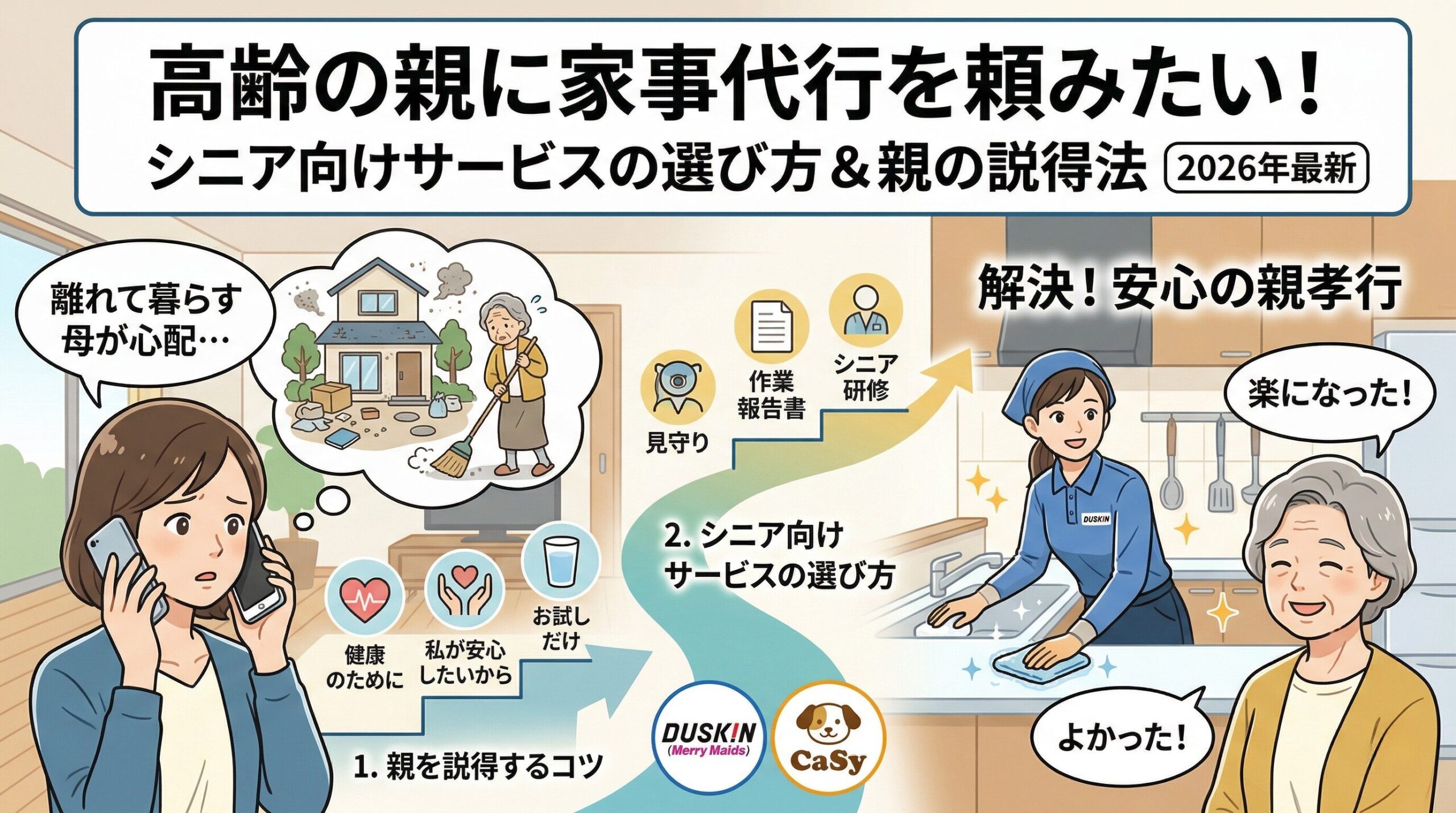 高齢の親に家事代行を頼みたい|シニア向けサービスの選び方と親の説得法【2026年】